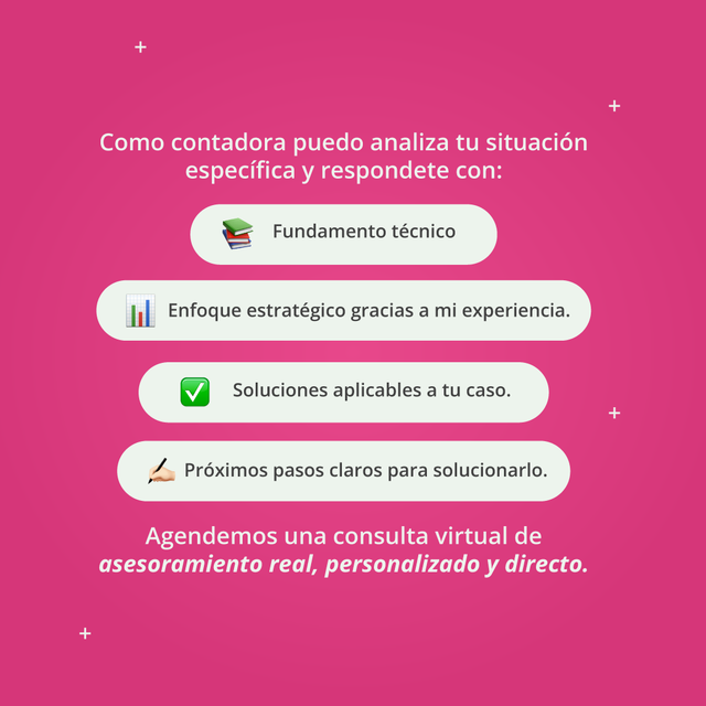Resolvé tus dudas financieras, contables o impositivas en 30 minutos online. Enviá tu consulta por adelantado y en la reunión vía Google Meet recibirás respuestas claras, soluciones prácticas y recomendaciones concretas para avanzar con seguridad en tu negocio.